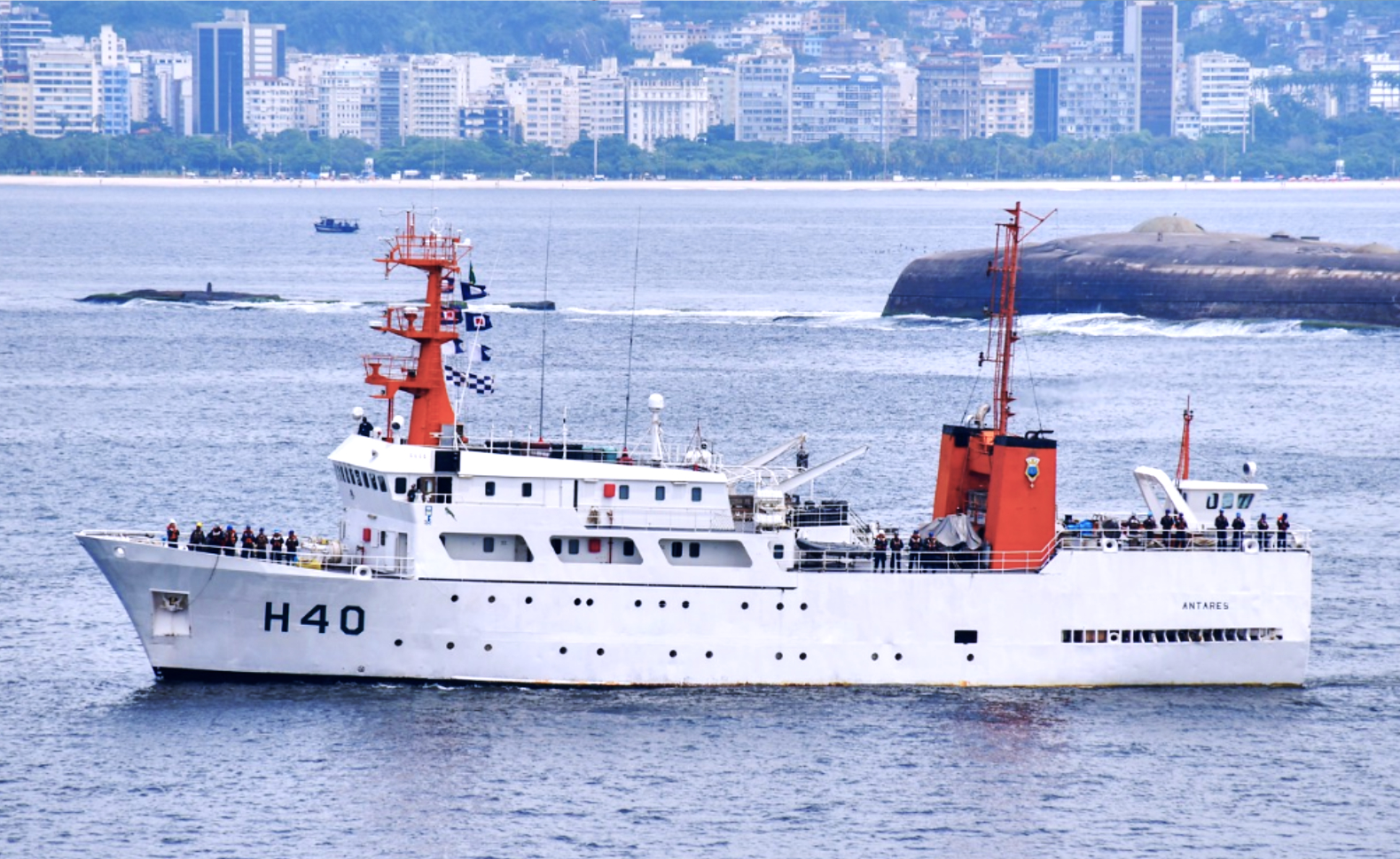 Navio de segunda classe da Marinha do Brasil, incorporado em 1988 e dedicado ao levantamento hidroceanográfico, meteorológico e ambiental para segurança da navegação e pesquisa científica. Construído na Noruega em 1983 como navio sísmico "Lady Harrison", o Antares atua em projetos nacionais e internacionais e, em 2024, foi usado para transportar suprimentos ao Rio Grande do Sul.